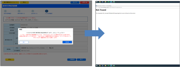 わりToDoリスト請求書発送依頼」メニューを利用した場合、完了ボタンを押下後、「NotFound」というエラー