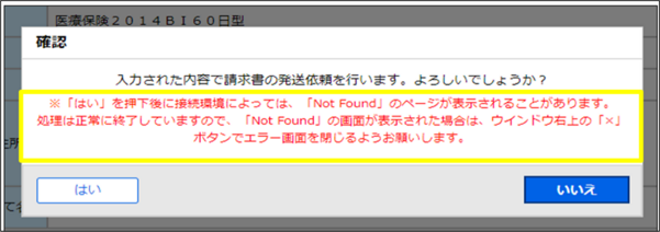 共同GWを経由して「ひまわりToDoリスト請求書発送依頼」メニューを利用した際、最終ページで「はい」