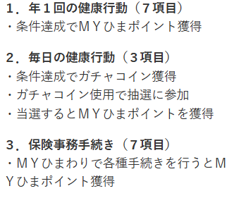 健康行動や各種お手続きで獲得できるポイントの名称をMYひまポイントと呼称します。