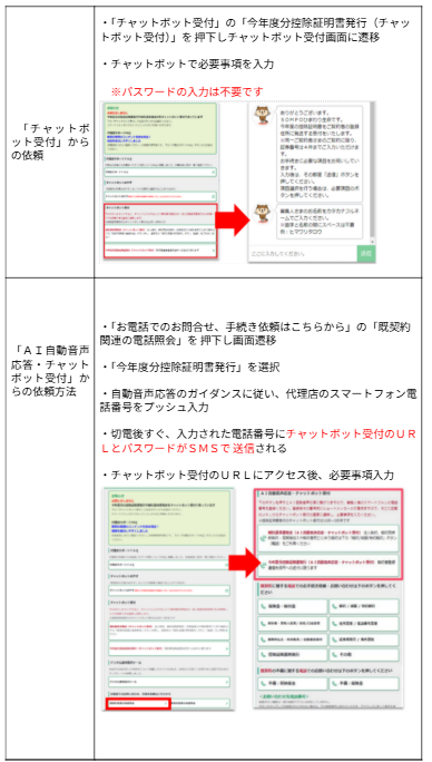 控除証明書発行依頼につきまして、営業時間外でもご利用いただける「代理店の皆