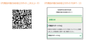 スマートフォンで以下の二次元コードを読み取り、「代理店の皆さまお役立ちサイト」TOPページ