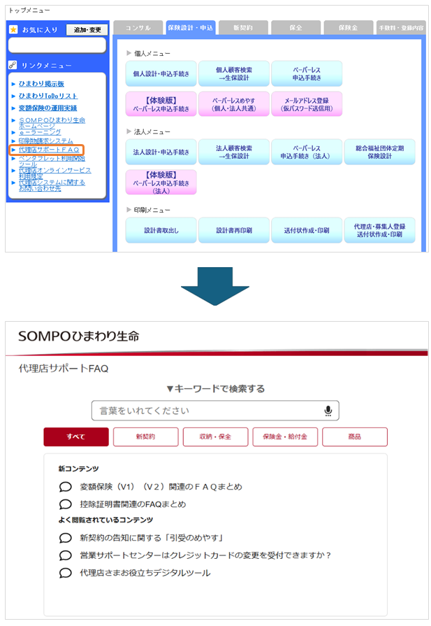代理店の皆さまが利用できる、スマートフォンで利用可能な「代理店サポートFAQ」を