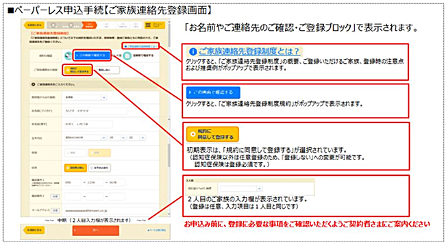 • 新契約における「ご家族連絡先登録」の概要
