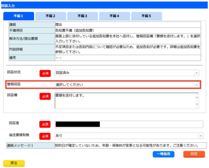 【新契約不備】簡易回答欄の文言を変更します!