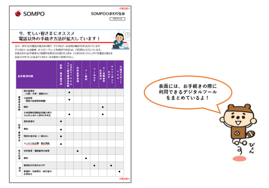 代理店さまが利用できるデジタルツールを一覧化したチラシをご紹介いたします。