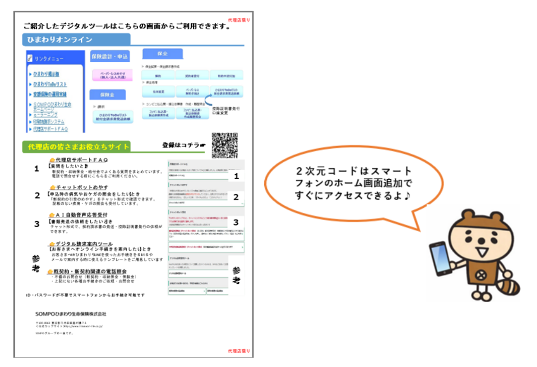 ひまわりオンライン、代理店の皆さまお役立ちサイトからアクセス可能です!