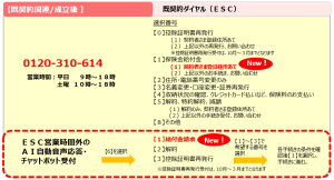 • ESC既契約フリーダイヤル(0120-310-614)に電話