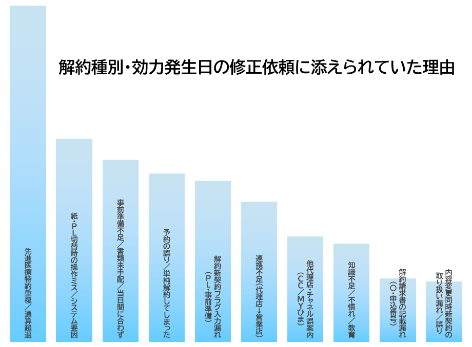 通常解約してしまった既契約の解約種別と効力発生日の修正が必要な事案が日々発生しています。