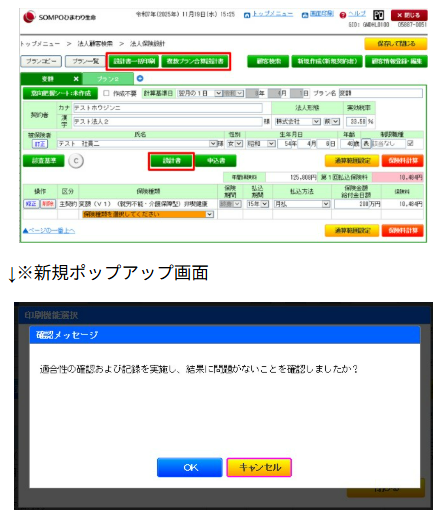 設計画面に適合性確認と記録の実施を確認するメッセージを表示し、適合性確認未実施による申込み手続きの防止を図ります。