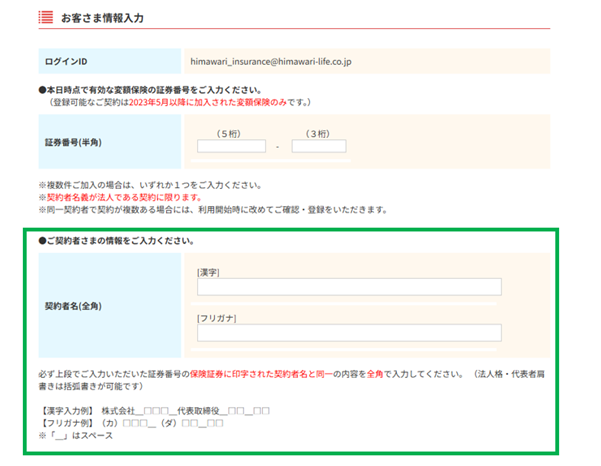現在、法人MYひまわり(Webサービス) のお手続きにおいて、契約者のフリガナ欄に英字が入力された際に、MYひまわり登録システムエラーが発生する事象が確認されております。