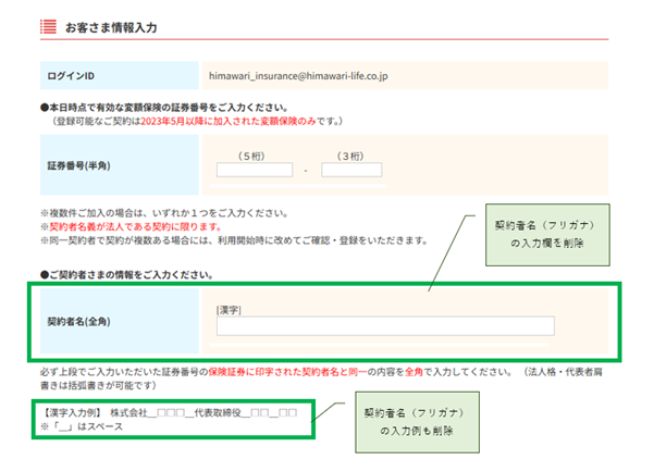 法人MYひまわり(Webサービス)登録画面での契約者のフリガナ入力時の不具合への対応として、下記のとおり、登録画面の改修を実施いたします。