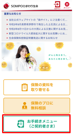 「お手続きメニュー(ご契約者さま)」サイトご利用に関する説明のチラシです。