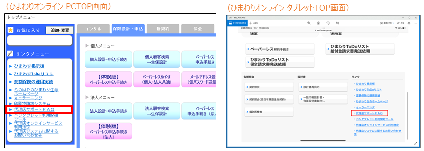 金融機関代理店は「代理店サポートFAQ」「代理店の皆さまお役立ちサイト」