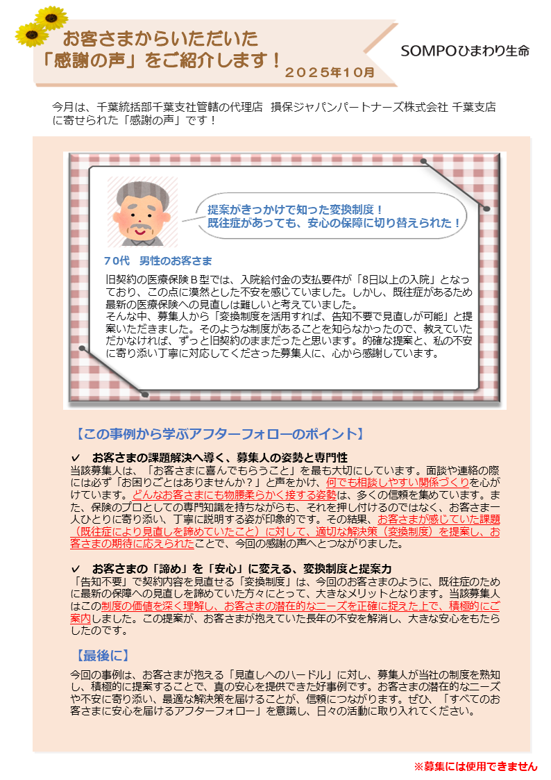 お客さまからいただいた「感謝の声(10月号)」をご紹介します!
