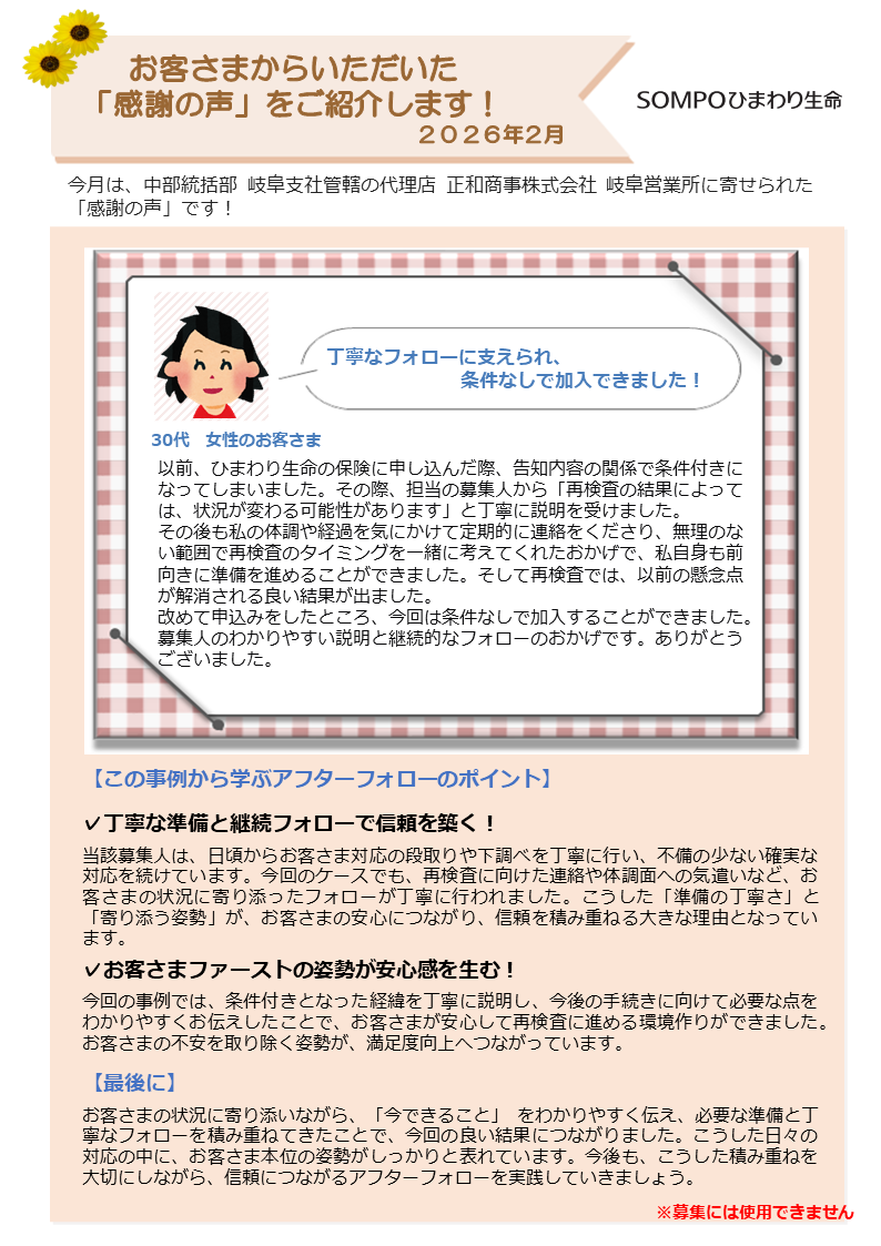 お客さまからいただいた「感謝の声(2月号)」をご紹介します!