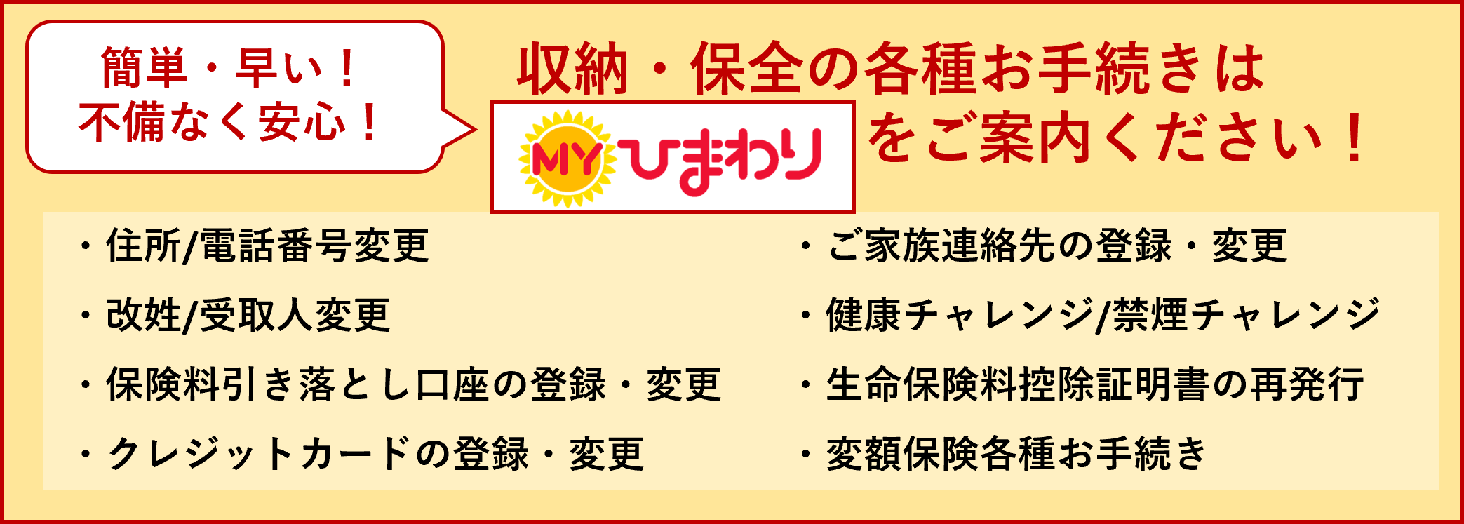 保険料引き落とし口座の登録・変更 口座変更手続きのメリットや取扱条件、手続き画面イメージが確認できます。 既契約払方変更のネット完結